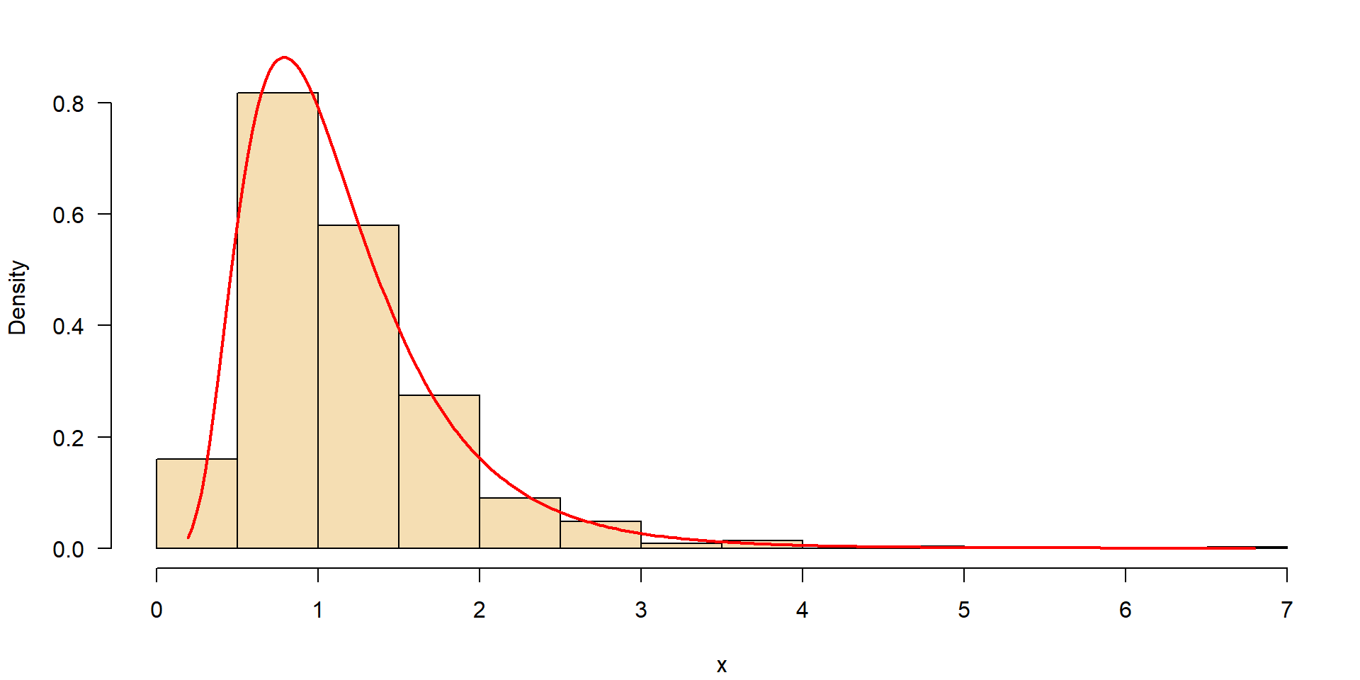 Die cdf (cumulative distribution function) ist das Integral der Dichtefunktion: