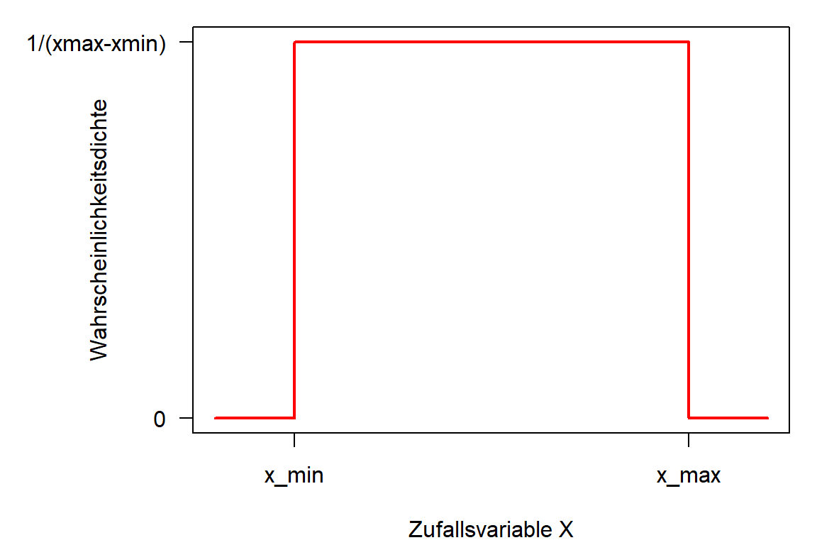 \[ f(x) = \begin{cases} \frac{1}{x_{max}-x_{min}} & \text{für } x \in [x_{min},x_{max}] \\ 0 & \text{sonst} \end{cases} \]