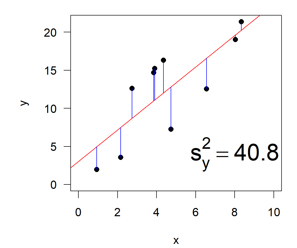 \[ RSS = \sum_{i=1}^n (y_i - \hat{y}_i)^2 = \sum_{i=1}^n \varepsilon^2 \qquad \text{(residual sum of squares)} \]