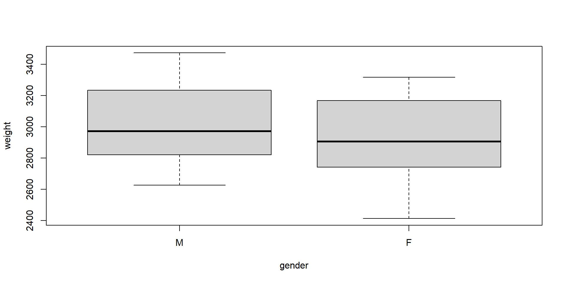 Der Boxplot zeigt viele Überschneidungen, und der Unterschied ist nicht signifikant, weil der t-Test wichtige Informationen außer Acht lässt: die Schwangerschaftswoche.