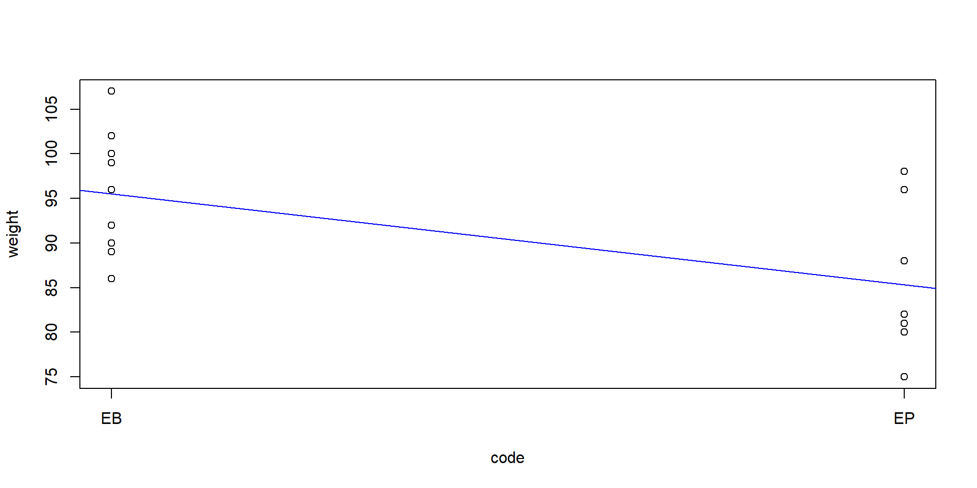 Wir kodieren eine Stichprobe („EB“) mit 1 und die andere Stichprobe („EP“) mit 2:
