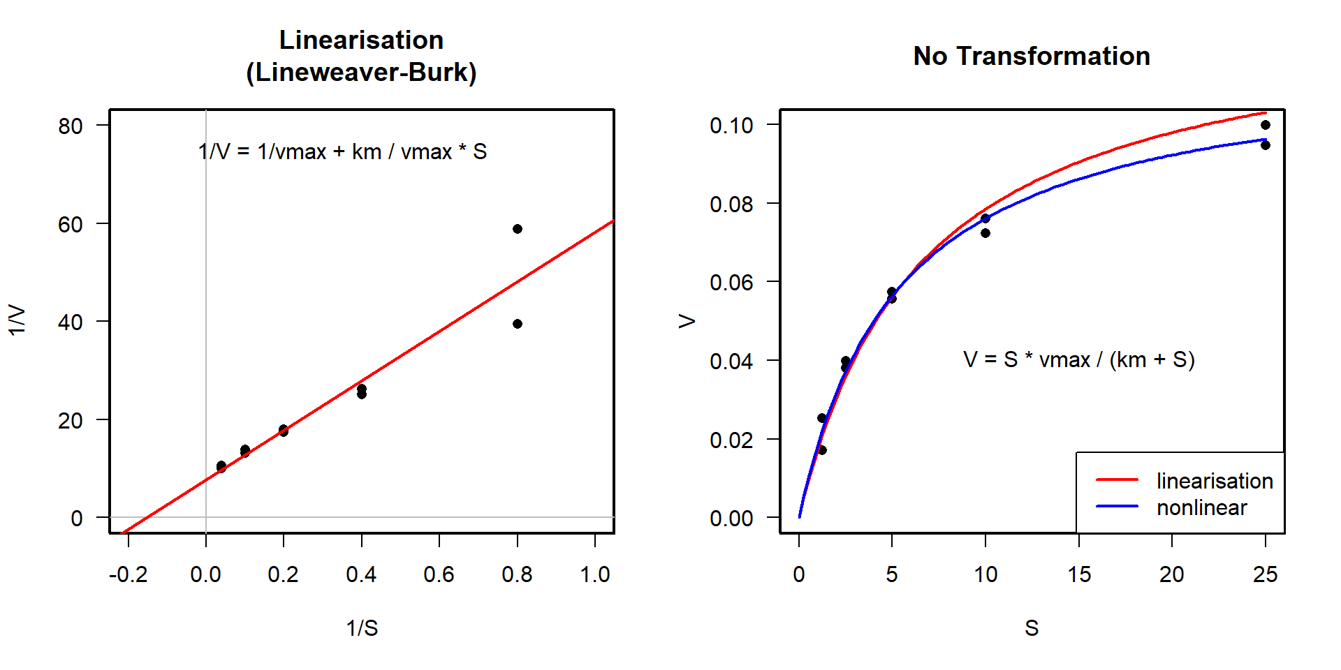 Lineweaver-Burk-Transformation vs. nichtlineare Anpassung