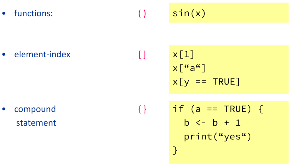 vector, matrix, list, data.frame, …We start with vectors, matrices and arrays, and data frames.