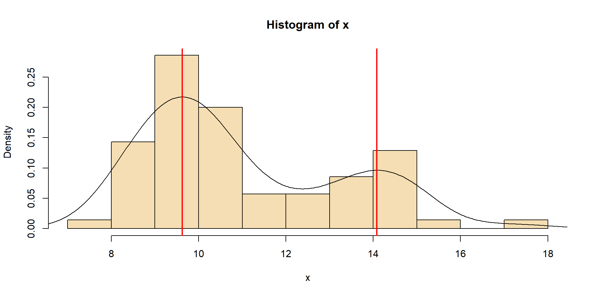\(\rightarrow\) trimmed mean: \(\bar{x}_{t, 0.1}=5.6375\)