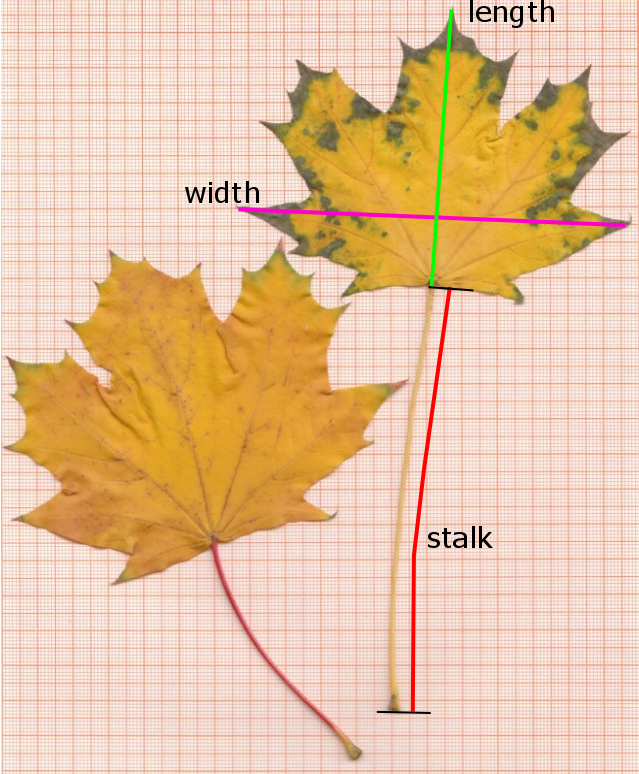 In a statistics course, two samples of Maple (Acer platanoides) leaves were collected by two groups of students: