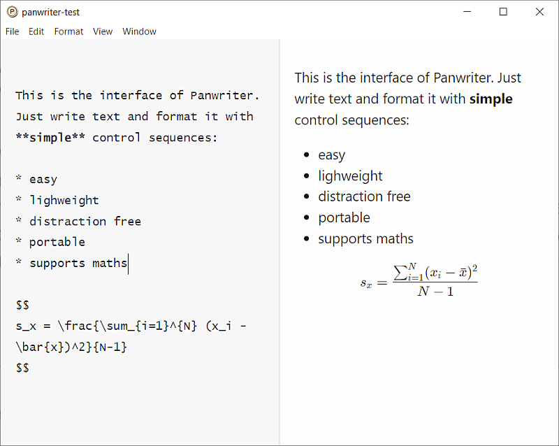Text can be written with any editor, that can be formatted, e.g. *slanted*, **boldface**,