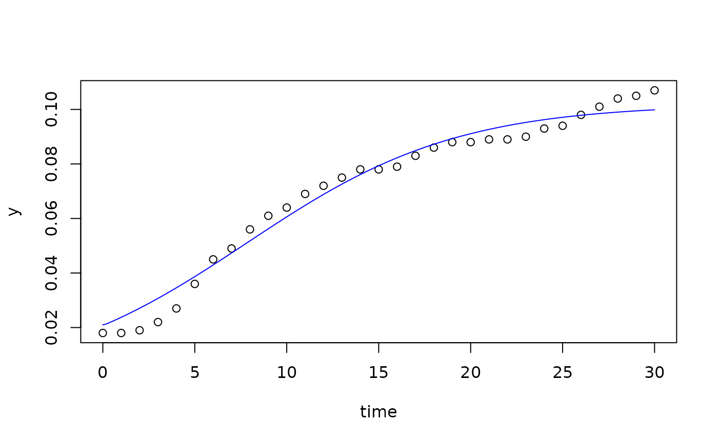 p <- c(y0 = 0.03, mumax = .1, K = 0.1, h0 = 1)